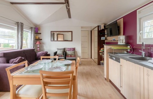 Our mobile home is located in a private Residence in Dinard. The Residence has a private swimming pool and tennis court in a tranquil and relaxing setting.