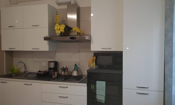 Inside the apartment there is a kitchen-living room with dishwasher, fridge, freezer, gas or electric oven, hob with 4-burner gas stove and all appliances in general, as well as TV sockets terrestrial and satellite digital for reception of clear channels, and Ultra HD HD TV. There is plenty of space to enjoy the traditional dishes of Bolognese gastronomy. It is also equipped with a dishwasher sink, extractor hood, waste bin, non-stick cookware and dishes, microwave, coffee machine, moka, iron and ironing board, dining table, kitchen utensils, cleaning and hygiene materials for home and kitchen.