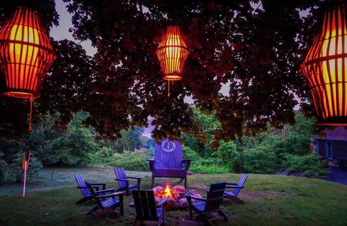 ⭑ Fire pit area with firewood and large adirondack chairs provided, perfect for toasting marsh mellows & telling ghost stories 🔥 🪵 🍫