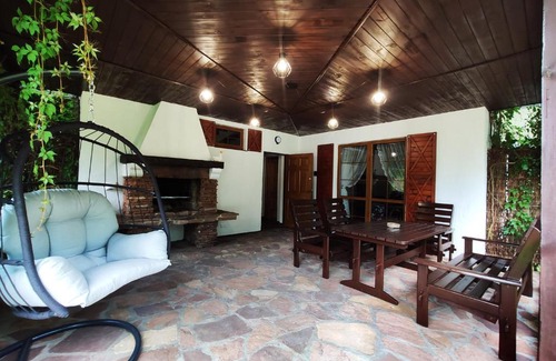 BathroomTowels, Body soap, Shower, Bathtub or shower, Private bathroom, Toilet paperMedia & TechnologyFlat-screen TV, TVKitchenDishwasher, Stovetop, Electric kettle, Wine glasses, Oven, Cleaning products, Kitchenette, Kitchenware, Washing machine, Refrigerator, Coffee machine, Dining tableOutdoorsOutdoor furniture, Patio, Terrace, Balcony, Outdoor dining area, BarbecueGeneralIroning facilities, Hardwood or parquet floors, HeatingBedroomExtra long beds (> 6.5 ft), Linens, Childrens' cribs, Wardrobe or closetLiving AreaFireplace, Dining areaViewGarden viewBuilding CharacteristicsDetachedRoom AmenitiesDrying rack for clothing, Hypoallergenic pillow, Socket near the bed |