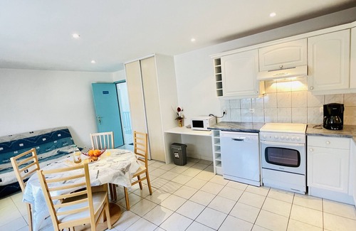 Located 350 metres from the entrance to the Bains les Bains thermal baths, the Bonaparte flat is on the first floor of the residence. It is fully equipped and has an open plan kitchen and living room (with flat screen TV). The kitchen has an oven, dishwasher, microwave, electric hob, kettle, toaster and more. The flat has one bedroom with a double bed. In the living room, there is a double sofa bed. Finally, there is unlimited free Wi-Fi, free laundry facilities and a parking space in front of the building. Rest guaranteed during your spa treatment. Adjacent garden and barbecue. See you soon