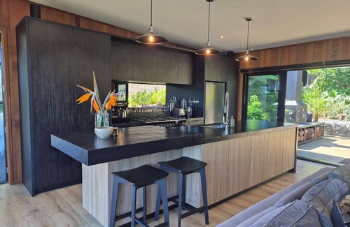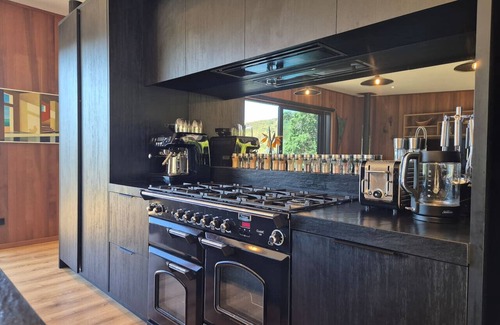With an open-plan design that showcases clean lines, warm natural timber decor, and a minimalist aesthetic, this luxurious holiday home harmonizes beautifully with its breathtaking surroundings. The fully equipped modern kitchen is perfect for whipping up culinary delights during your stay.