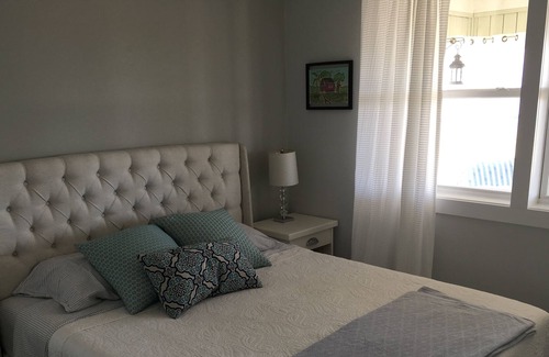Guests need to be careful around the breakwater wall and rocks along the property and the shoreline. Guests are responsible for their own safety and the safety of their children. Water is calm and great for swimming, but water shoes are recommended as there are few rocks to walk across to get to the sandy bottom for swimming. We have water shoes available, but can't ensure we have your size.
