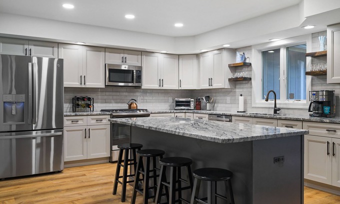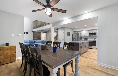 Our home - Bear Cub Lodge, has everything you need for a perfect family getaway! The bedroom set-up is perfect for a large multi-generational family, or for families vacationing together. The open floor plan + loft allows for everyone to be together, while also providing separate spaces for adults and kids. The beautiful, fully equipped, and spacious kitchen has everything you need to entertain and feed your group. The home boasts several outdoor amenities, including a large screen room off the kitchen to enjoy outdoor dining, a deck with a propane grill, picnic-table seating, a large outdoor umbrella, a hammock, and a cozy fire pit with plenty of outdoor seating for the perfect relaxing ending to any evening. A variety of games, including foosball, board games, tiki toss, and corn hole, are available for kids of all ages. The home includes modern amenities, including high-speed wi-fi (250mbps) and 5 Smart TVs for logging in to your favorite streaming service (although who wants to watch TV!).