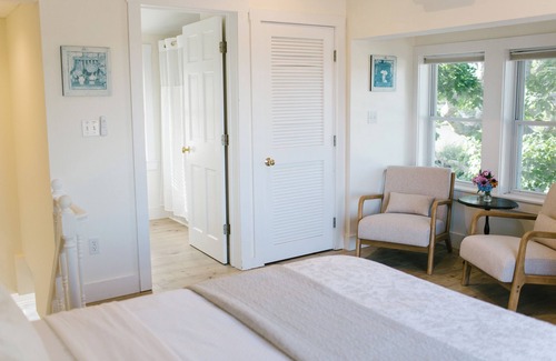 This unit is perfect for a couple with one or two small children or one older child. It is also perfect for someone who wants to work while they travel. Although it is off by itself, you still have the full amenities of the Admiral's Quarters available - the solarium, main patio, Adirondack chairs on the ledges around a fire pit on the front lawn etc. And last but not least the best location ever - steps from anything you might need anywhere in town.
