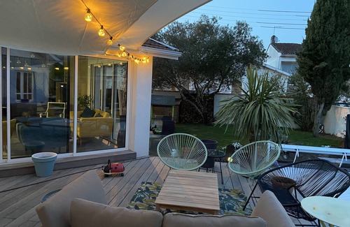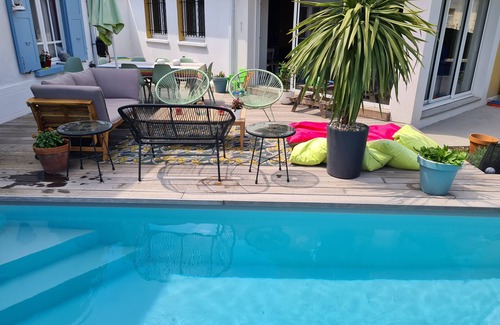 Child barrier integrated into the staircase. The garden has an inground heated swimming pool within a large wooden terrace. A plancha is also available. You will have no trouble parking your cars for free. We will provide sheets and towels on request. This townhouse is ideally located in a quiet area but very accessible for visiting the heart of Bordeaux and its surroundings.