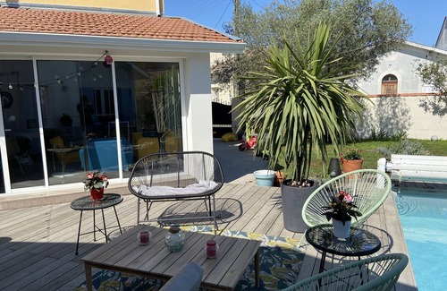 Bordeaux house with heated inground pool is located in Merignac. Bordeaux house with heated inground pool provides accommodation, featuring Kitchen, Pool, Security/Safety, among other amenities. This House features Kitchen, Pool, Security/Safety, to make your stay a comfortable one.
