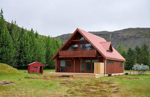 Are you heading North, West, South or South West? We also run the quality cottages "Hamragil" by the town Akureyri up North (Booking Number 3925011), "Tvera" at the south coast of the Westfjords (4084081), "Stekkar" south of the great sights Geysir and Gullfoss (2903253) and Brekka right at the bay Hvalfjörður just north of Reykjavik (9257064).