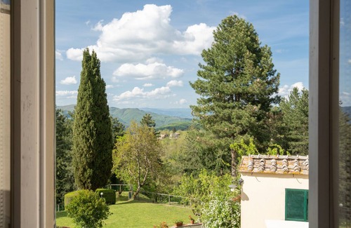 Manor house "Castagnoli", 650 m a.s.l surrounded by fields and vineyards. 12 km from the centre of Greve in Chianti, 2 km from the centre of Lucolena, in a secluded position, in the countryside. Private: property 40 ha, park, beautiful, well-kept garden (not fenced) with flowers and trees, lawn for sunbathing, swimming pool (10 x 5 m, depth 100 - 200 cm, seasonal availability: 10.May. - 10.Oct.). Outdoor shower, terrace, barbecue, pool maintenance by the owner/gardener. 500 m long bumpy motor access (via unmade road). Parking on the premises. Shop 2 km, supermarket 10 km, bus stop 3 km, sandy beach "Marina di Cecina" 85 km. Golf course (18 hole) 20 km, walking paths from the house 50 m. Nearby attractions: Siena 30 km, Volterra 44 km, Firenze 50 km, Arezzo 75 km. Please note: car recommended. Baby equipment (included). Groups of teenagers on request only.