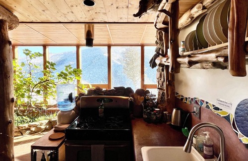 Our handcrafted Earthship has been meticulously designed with local, natural materials as well as reclaimed materials. A fully sustainable cob home built into an earthen mountainside with towering views of Sugarloaf Mountain and the sprawling valley below.