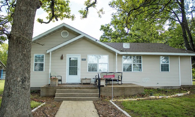Find an escape off the beaten path at this beautiful home! 2 bedrooms, 2 bathrooms and a large living room & kitchen, this vacation rental is the perfect getaway for the whole family to enjoy! For a day of exploring, take a drive along route 66, get outdoors and explore the Grand Falls, or make a visit to the nearby Joplin History & Mineral Museum. Back at the house, whip up dinner in the well-quipped spacious kitchen, relax on the front porch, or have a movie night in the living room.