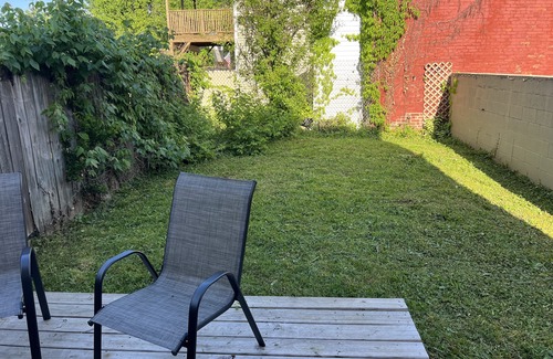 When you walk in you'll feel right at home in Louisville, with our large Derby canvas and other small touches embracing our city. The home is clean and bright! You'll first notice the beautiful exposed brick wall down the hallway. Even though the home has been remodeled to feel clean and cozy, we kept two exposed brick walls to capture this beautiful victorian brick home. The living room features comfortable couches, a cozy rug and a 65inch smart TV! There are two bedrooms on the main floor, both with brand new carpet. A king sized bed in one room and a queen in the other. The main floor also features a small kitchen that has all the essentials, including a Keurig and we include a handful of k-cups for your convenience. There is also a dinning room off of the kitchen with a table. There's also a full bathroom on the main floor right off of the dinning room.