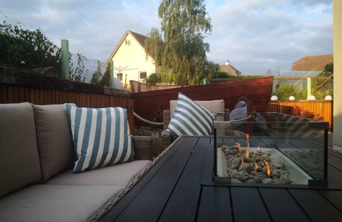 Step outside to your own private outdoor space, complete with a fire table, comfortable seating, and a handcrafted wooden boat feature called An Bhanríon (“The Queen”), which gives the cottage a unique nautical character. It’s the perfect spot for your morning coffee, a quiet read, or drinks under the stars.