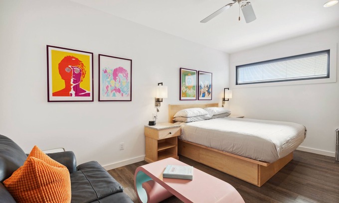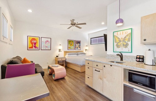 Live like a local in the heart of Folly Beach. The Studio room has a living area, kitchenette, and King size bed in the same room. There is a full bathroom. Our boutique Hotel Folly is located just steps away to Folly's popular Center Street where you can enjoy shopping, more dining and nightlife, or a quick stroll to the beach. Have fun enjoying sunset views over the Folly River from the cozy outdoor sofa on the porch, and take in the sights and sounds of our beloved hippie surfer beach town we refer to as the “Edge of America”. This studio room is on the second floor.