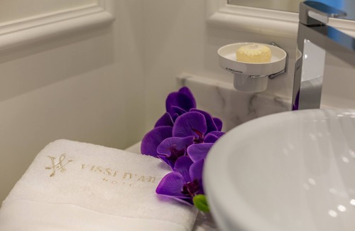 Boutique Hotel Vissi d'Arte offers 9 air-conditioned accommodations with minibars and laptop-compatible safes. Rooms open to furnished balconies. Each accommodation is individually furnished and decorated. Beds feature premium bedding. Flat-screen televisions come with satellite channels. Bathrooms include showers, bathrobes, slippers, and bidets.