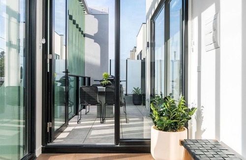 Luxurious styling, fixtures and finishes welcome you at The Clarke, with an open design and ample glazing for lots of natural light. Cook like a chef in the well-appointed kitchen or have a BBQ and enjoy both indoor and outdoor dining, with a private balcony accessed from the living space. Small pets are welcome on application and all the mod cons are covered, with free wifi, Netflix and ducted air conditioning. Axel Apartments also boast a 6-star energy rating and a sustainable grey water system.