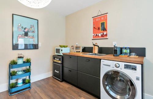 Food & DrinkTea/Coffee maker, Bottle of waterBathroomFree toiletries, Walk-in shower, Bathrobe, Shower, Private bathroom, Slippers, Bathtub or shower, Guest bathroom, Toilet paper, Body soap, Shampoo, Hairdryer, Conditioner, Toothbrush, Shower cap, Toilet, TowelsGeneralPrivate entrance, Trash cans, Fire extinguisher, Key card access, Key access, Iron, Air conditioning, Hardwood or parquet floors, Heating, Safe, Fan, Smoke Alarm, Carbon monoxide detector, SoundproofMedia & TechnologyFlat-screen TV, Radio, TV, Streaming service (like Netflix)KitchenElectric kettle, Cleaning products, Coffee machine, Kitchenette, Microwave, Toaster, Refrigerator, Washing machine, Dining table, Wine glasses, DryerLiving AreaSitting area, Sofa, Desk, Dining areaOutdoorsPatio, Outdoor furnitureBedroomLinens, Wardrobe or closet, Alarm clockRoom AmenitiesNon-feather pillow, Socket near the bed, Sofa bed, Adapter, Drying rack for clothing, Clothes rackViewQuiet street viewPhysical distancingSingle-room AC for guest accommodationCleanliness & disinfectionHand sanitizer |