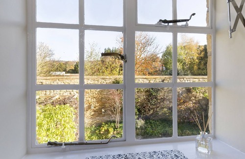 Tucked behind Box Cottage is a charming courtyard garden, enveloped by traditional Cotswold stone walls and a beautiful wisteria-clad pergola, offering welcome shade on sunny days. It's the perfect spot for dining on warm evenings after a busy day exploring the beautiful Cotswolds.