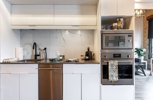 "Step into The Songbird, an art lover's sanctuary nestled in the heart of downtown Stratford. This beautifully curated loft boasts select pieces from the owner's personal art collection, infusing every corner with elegance and inspiration. Featuring a luxurious Queen bed, a fully equipped kitchen for your gastronomic adventures, Netflix for leisurely evenings, and convenient onsite laundry, The Songbird merges comfort with artistic flair.