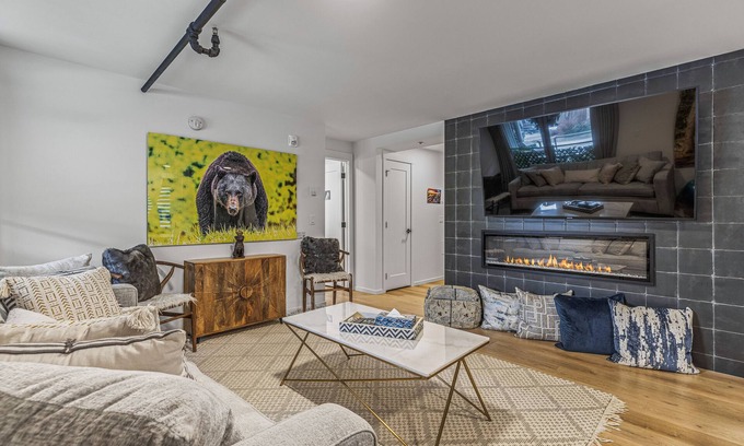 Brand new central Canmore condo; stylish, spacious and fully equipped. In prime location. Minutes walk to downtown, bars, restaurants, grocers, and more. Five minutes to Banff gate.