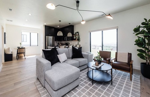 Brand new modern home. Listing is for the entire walk out basement. Home is in a quiet neighborhood with breathtaking sunset views. Designer furnishings will make you feel welcome and at home. Comfortable beds and linens provide a restful nights sleep. Fully stocked kitchen has everything you need to prepare a family meal. Dedicated work space to work while away. Large backyard to enjoy the beautiful sunsets. This home is bright, airy, and inviting to all including your precious pets.