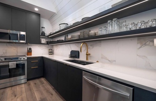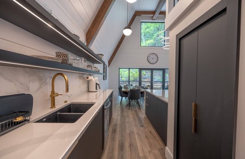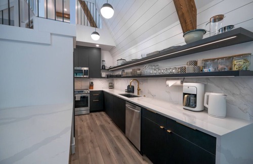 The heart of the cabin is its fully equipped kitchen, perfect for culinary enthusiasts looking to whip up delightful meals with ease. Bathrooms are a haven of relaxation, boasting high-end finishes for a spa-like experience. For your convenience, a huge in-suite laundry room is available, making extended stays as comfortable as possible.