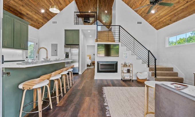 A brand-new luxury cabin with top-of-the-line finishes on 2 acres overlooking horse pastures. Perfect for couples and families, it offers king beds, a private hot tub, and high-speed Wi-Fi. Unwind by the fireplace, sip coffee on the porch, or roast marshmallows under the stars.