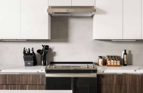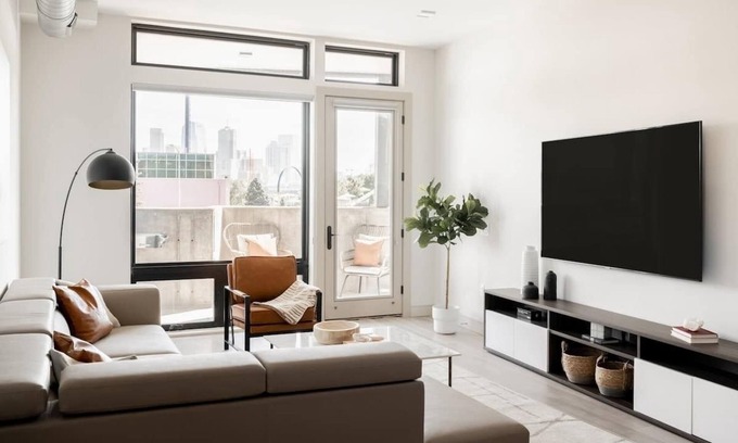The Tesoro lives up to its name as this property is truly a treasure. Each level features an earth tone accent color that brings personality to each unit. Neutral, clean line furnishings anchor each room. Thoughtfully curated modern, minimalist art brings each space to life while creating a tranquil environment. A refined selection of organic décor creates a soothing sanctuary-like setting in the heart of Denver. Still, swank city energy and innovation resonate from the stone waterfall countertops and top-of-the-line stainless steel appliances and laundry set.