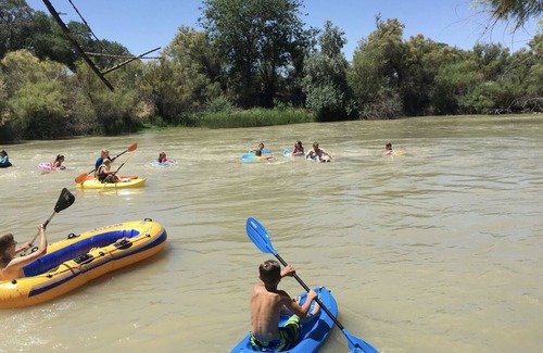 Brand New 2300 sq ft home sleeps 11plus in beds with more options listed below, hot tub, pool table, Foosball table, Mountain View, 4 large tv’s, wireless internet, fully furnished, AC, country location, close to mountains, river fishing swimming kayaking, sand dunes, rock hounding, kayak rental with river access in and out. House has additional sleeping pads, cot, pull out mattress and several couches, fully furnished bedding, towels, Keurig coffee / hot chocolate maker some k cups provided, toaster, dishes / pots and pans, soaps, tv’s with Wi Fi, great views. Lots of parking. Railroad tracks across the main road so occasional train noise, shared yard with host home with rental home located directly behind accessible by wrap around driveway.