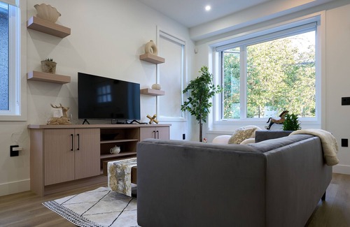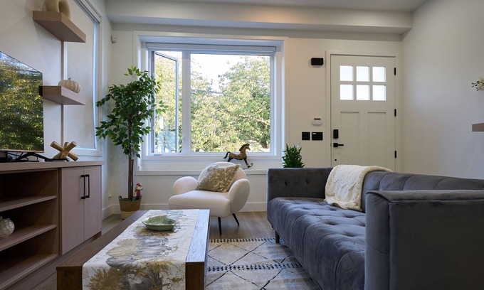 This is a brand new duplex located in the desirable Vancouver Collingwood area. Pefect for accommodating a large family visiting Vancouver. The home provides 4 cozy bedrooms and 3.5 bathrooms, as well as a spacious kitchen fully loaded with all the essential amenities guests could need. The entire house is equipped with central air conditioning and radiant floor heating. The space within this lovely home is characterized by contemporary design, comfortable and brand-new furnishings, and outstanding functionality, all tied together by a brilliant layout designed for a family.