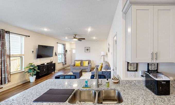 Conveniently located just a 5-minute drive from Lackland Air Force Base, this brand new two-story house in San Antonio, TX, is the perfect home base for your visit, especially for BMT Graduation. Thoughtfully furnished with an open-concept layout, this property is ideal for hosting friends and family during your trip to San Antonio.