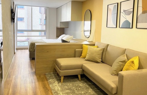 Brand New Studio in the heart of Bogota city. Cozy, quiet and safe! Walking distance to several historical/touristic places, public transportation (Transmilenio Station), and multiple restaurants and local stores.