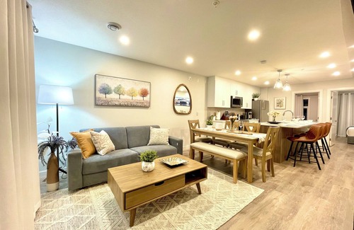 Wake up to breathtaking views in this luxury mountain home! This brand-new townhouse has a style all its own and features an open concept with living/Kitchen/dinning/2 beds & 2 full baths all on one level. Well appointed & tastefully furnished, fully stocked kitchen, and in-suite laundry. From sweeping views to high-end amenities, we’ve thought of every detail to make your stay unforgettable.