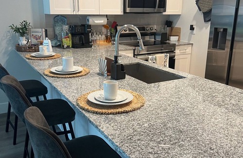 This home is fully stocked with everything brand new - from a rice cooker to a pool bag and slippers ready for the evening - this home has it all. There is King bed in the master with hotel grade linens along with a pullout couch for guests. There is a Smart TV in the living room and bedroom along a large island perfect for chef'ing it up and entertaining guests. Smart commands and Alexa enabled.