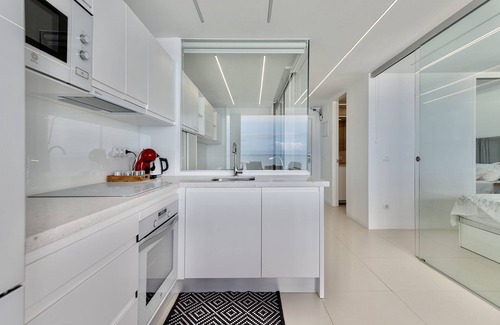 The apartment has just been completely refurbished to the highest standards. It is located on one of the top floors and is facing west, which means it get amazing views as the sun sets on the horizon. Direct sea view from the living room and from the bed! Lift. Direct access door to the beach promenade. They are very few steps to get to the beach. Quiet area, without traffic, without cars. Walking along the promenade it takes a few minutes to reach the renowned beach resort and leisure center at Anfi, as well as one of the most beautiful golden sands beaches in Gran Canaria. On the ground floor you will find the Kai Club, a private beach club with pool, hot tubs, a 5 star restaurant, and a spa (entry fee required).