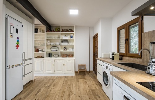 The kitchen is complete; There is dishwasher, washing machine, ceramic hob, toaster, Nespresso, fridge with freezer, manual juicer, etc.