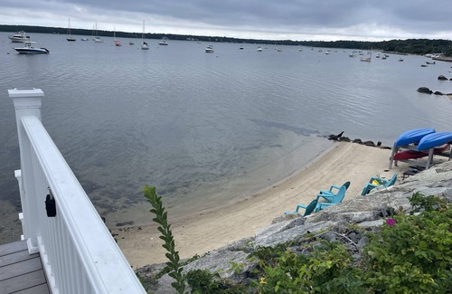 Brand new upscale home with private beach on Waquoit Bay. High end finishes, all bedrooms en-suite, gourmet kitchen, outdoor shower, gorgeous patio with sweeping views of Waquoit Bay and Martha's Vineyard in the distance. 3 kayaks on rack on beach. Close to Mashpee Commons, Pomponesett and Falmouth.