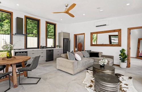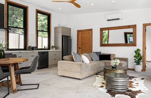 Gan Eden is a beautiful, architecturally designed 87m2 villa. The feeling of being amongst nature is masterfully achieved via large windows throughout, bringing the outside in. The bedroom is fitted with blackout curtains if you wish to treat yourself to a cheeky sleep-in. Reverse cycle aircon in all rooms ensures cool summer days and warm winter nights.