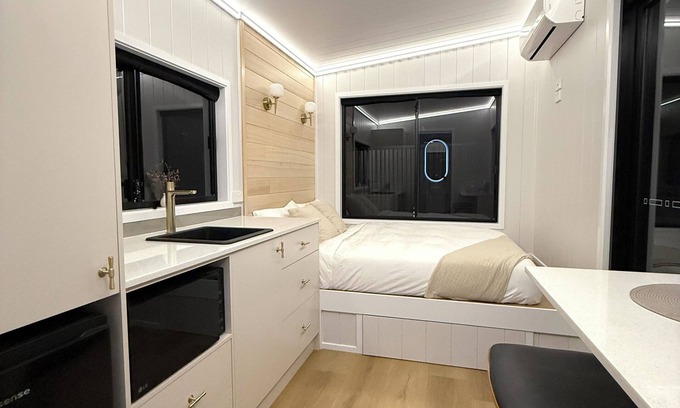 Tiny Harmony is a carefully curated luxury tiny house, ideal for couples or solo travellers seeking a cozy yet elegant stay. Thoughtful touches and high-end finishes create a warm, inviting atmosphere designed to make you feel right at home. With a beautiful decking at the front, you can enjoy the hot morning tea or coffee under the sun.