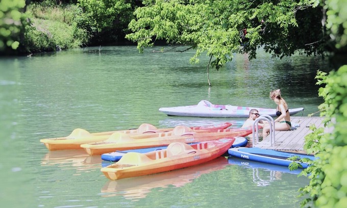 Geronimo Creek is a spring, 1 to 8 feet deep creek, perfect for siting and cooling off or swimming. The fishing is fantastic with large catfish and bass! Guests will enjoy free kayak and paddleboard use, as well as a super fun rope swing. Families and friends spend countless hours here swimming, kayaking, relaxing, and having fun, in and along the banks of the Geronimo Creek.