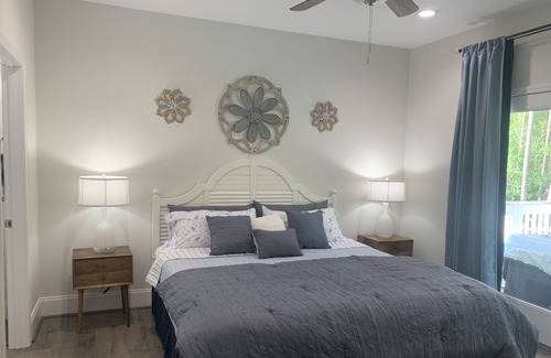 Split Floor Plan with Open Commons Area, Sleeps 6-8 ppl. Comes with pack & play and fenced in back yard. Fire pit, Kayak, (2) SUPs, Zero Gravity Chairs, Covered Back Porch and sun deck with pergola. New Gas grill. Extra Large Dining Table ( seats 8+) and Butcher Block Island that seats 3. Laundry Room, Ample Parking. You might not want to leave:-) P.S. We offer access to Pontoon Rental as well.