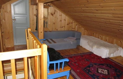 "Brandsbu", 7-room house 120 m2. Cosy furnishings: living/dining room with Scandinavian wood stove, dining table and TV. Exit to the terrace. 1 room with 1 double bed (180 cm, length 200 cm). 1 room with 1 double bed (160 cm, length 200 cm). Open kitchen (oven, 4 ceramic glass hob hotplates, toaster, kettle, freezer, electric coffee machine). Shower/WC, sep. WC. Electric heating. Upper floor: small living room. 2 rooms, each room with 1 bed (120 cm, length 200 cm), 1 double bed (160 cm, length 200 cm). Large terrace 44 m2. Terrace furniture, barbecue (portable). Panoramic view. Facilities: Internet (WiFi, free). Please note: non-smoking house. Smoke alarm, fire extinguisher. 924531169