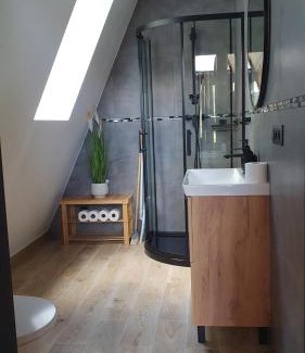 Offering a garden, Brda na skraju lasu provides accommodations in Wambierzyce. This property offers access to a terrace, free private parking, and free Wifi. Errant Rocks is 21 miles from the vacation home and Polanica Zdrój Mineral Water Pump Room is 8.2 miles away. The air-conditioned vacation home consists of 2 bedrooms, a living room, a fully equipped kitchen with a dishwasher and a coffee machine, and 1 bathroom with a shower and a hair dryer. Guests can take in the views of the mountain from the balcony, which also has outdoor furniture. The accommodation is non-smoking. For guests with children, the vacation home offers outdoor play equipment. Guests can relax near the outdoor fireplace at the vacation home. Polanica Zdroj Train Station is 9.2 miles from Brda na skraju lasu, while Kudowa Zdrój Train Station is 21 miles away. Copernicus Wrocław Airport is 65 miles from the property.