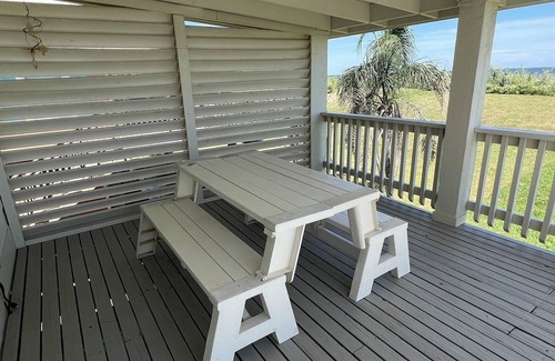 Grand Isle is 'Sportsmen's Paradise' and family 'Fun in the Sun' all in one! Enjoy being right on the beachfront in our 4 BR, 3 BA camp that is set up to make your family comfortable as well as ours! The Master BR has a king size bed and a private bath with shower. The 2nd bedroom has a queen size bed and one twin. The 3rd and 4th bedrooms have 1 set of twin bunks and 1 set of pyramid bunk (twin over queen) in each and are right across the hall from each other with a Jack and Jill bathroom. The 3rd bath has shower/tub combination. The kitchen, dining room, and living area are all open to each other and overlook the beautiful Gulf of Mexico. Enjoy the beautiful view and the sound of the waves from the living area through the wall of windows that span the entire back wall, or from the deck with multiple seating options, or with your toes in the sand right on the beach! Downstairs you will find a boiling pot with propane burner (please bring your propane bottle), large charcoal grill, two burner cooker, enclosed outdoor shower along with some additional seating.Nearest golf cart crossover is #4.0 across from Krantz Lane which is one street over from this location.