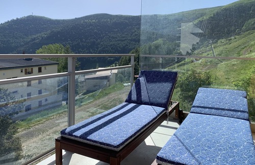 Beautiful and large 110m2 apartment decorated by a professional in the style Wooden Chalet; Beautiful double reception room, big screen TV, itunes, wifi. Large balcony equipped with views of the mountains. 3 bedrooms and 3 bathrooms.