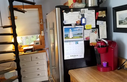 Very cozy and private. Spiral staircase to bedroom. Sliding glass doors open to wrap-around deck and lawn that slopes to ocean. 300+ feet deep water frontage separated from lawn by broad rock ledge. Enjoy your morning coffee watching lobster and sail boats in the Mussel Ridge Channel. Unbelievable and peaceful views out to ocean and north to the Camden Hills. Windjammer cruises, golf, tennis, hiking, museums, access to nearby islands. Unparalleled views everywhere.