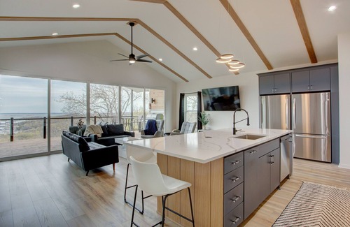 Enjoy breathtaking views while relaxing and laughing with family and friends. This is the perfect get away for making lasting memories. Whether you decide to launch your boat and venture to the lake, enjoy the tri-level pool at Tanglewood Resort, play a round of golf, grab a coffee and head to downtown Denison for shopping and wine tasting, or relax at the house to fire up the grill on the patio, you will not be disappointed. The house is fully stocked with all the necessities needed to feel right at home including, 7 smart TVs throughout, fully stocked kitchen with duel refrigerators, a fire pit, pool table, ping pong table, air hockey, and various board games. Your kiddo's can even bring their gaming systems and connect to the duel T.V.'s in the game room. Don't feel like cooking? No problem! Tanglewood Resort, seasonal restaurants at Highport Marina, Arroyos, Bay at the Lake, Franks, and Napolis are just minutes away. If you want to venture a little further, Choctaw Casino is just 30 minutes down the road.