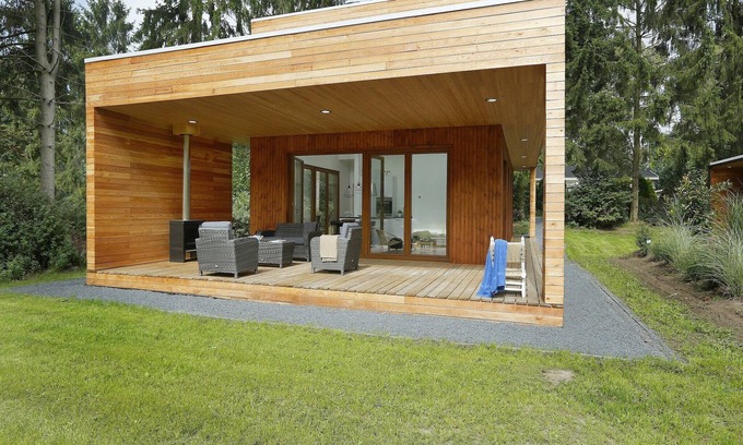 Tucked away in the peaceful landscape of Enter, this charming pet-free forest lodge at Holiday Center 't Schuttenbelt is designed for guests seeking tranquility, style, and comfort. Crafted entirely from wood with warm natural tones, the lodge offers a unique ambiance that blends beautifully into its green surroundings. Inside, you'll find two spacious bedrooms—each with a private en-suite bathroom—ensuring maximum comfort and privacy for couples or families.