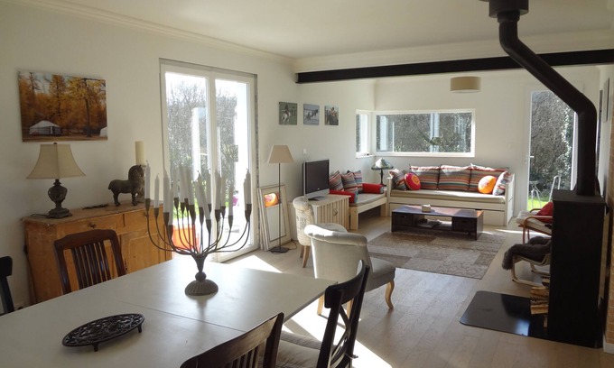 - The house is very bright. The living room is around 45 m2. The open kitchen is functional and very well-equipped. Internet Wifi, TV, Wii game console, DVD player, books, DVD and games for your evenings.