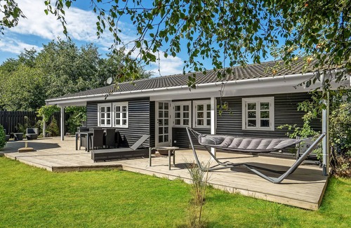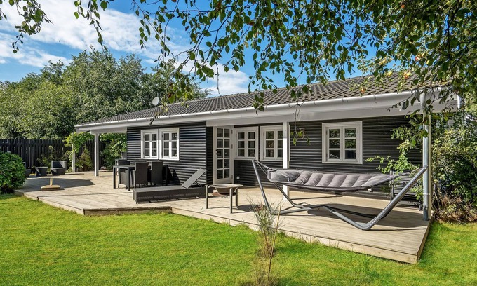 This stylishly furnished summer cottage with the large covered terrace will put you in a vacation mood as soon as you enter.